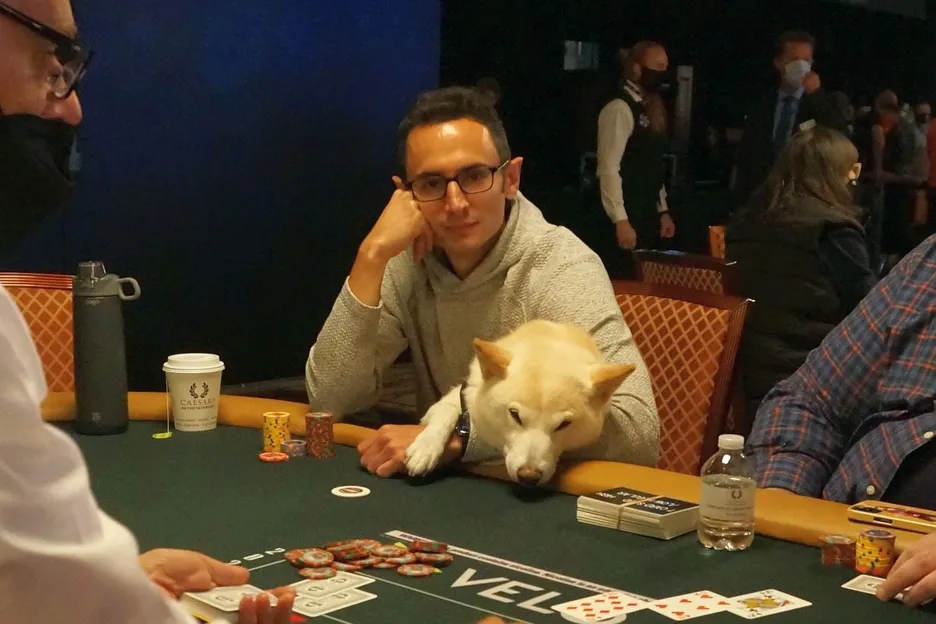 Gabriel Ramos has had a pretty good WSOP so far. He final tabled the $1,000 Super Turbo, took 15th in the $1,000 PLO event, and cashed in two other events. Anyone watching Ramos progress through the series will have probably spotted that he does not play alone. Ozy, Ramos's Shiba Inu will occasionally climb into Ramos's lap and lay his fluffy head down on the elbow rest.