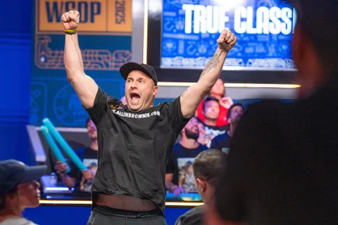 WSOP figurehead Jack Effel jumped on stage after the win, joined by several other Poker Hall of Famers like Phil Ivey, Brian Rast, Phil Hellmuth, Jen Harman, Mori Eskandani, and Eli Elezra.