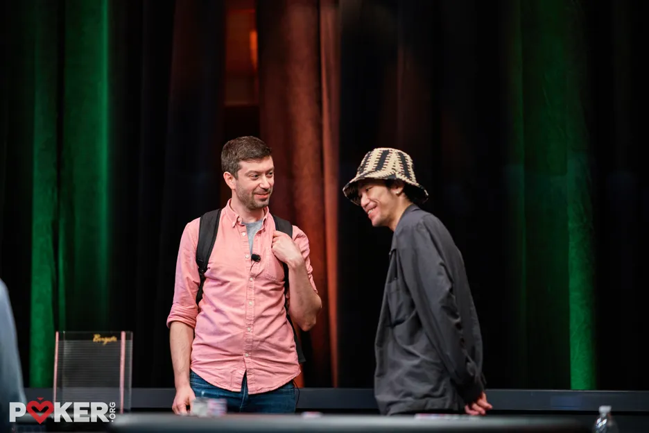 Brendan Mahoney had been hanging around the middle for most of the day, but he made his move in four-handed play with the elimination of Henderson. The bustout gave Mahoney the overall chip lead, while Huang and Hartshorn lingered close behind with relatively even stacks.