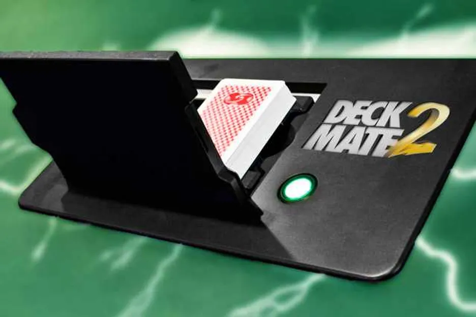 The Deckmate 2, the newer model of casino shufflers, does have advanced capabilities. It includes a small computer that can sort and verify a full deck, even indicating if a specific card — such as the three of diamonds — is missing.