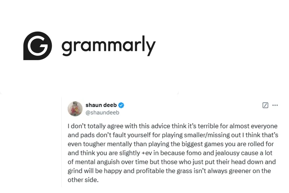 With love and apologies to Daniel Negreanu, Vladimir Korzinin, Phil Hellmuth, Shaun Deeb, David Tuchman, Grammarly and 888Ride.