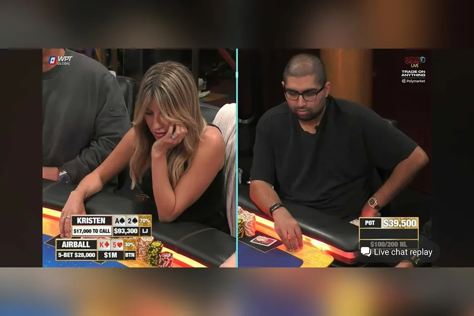 Nik Airball added $10,000 more to a big losing night on Friday after he stepped into the path of a head-to-head prop bet against special Hustler Casino Live guest Kristen Foxen and benefactor Chance Kornuth.