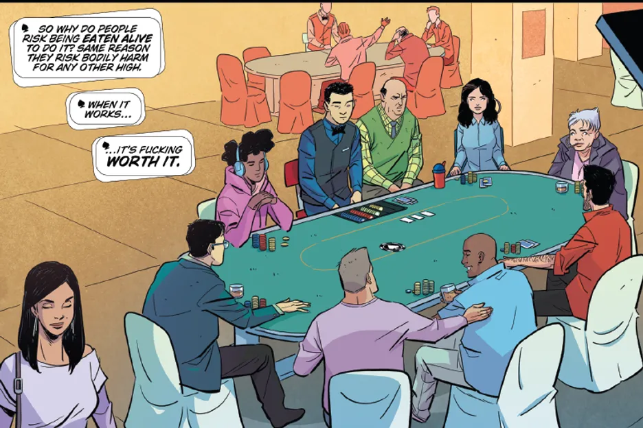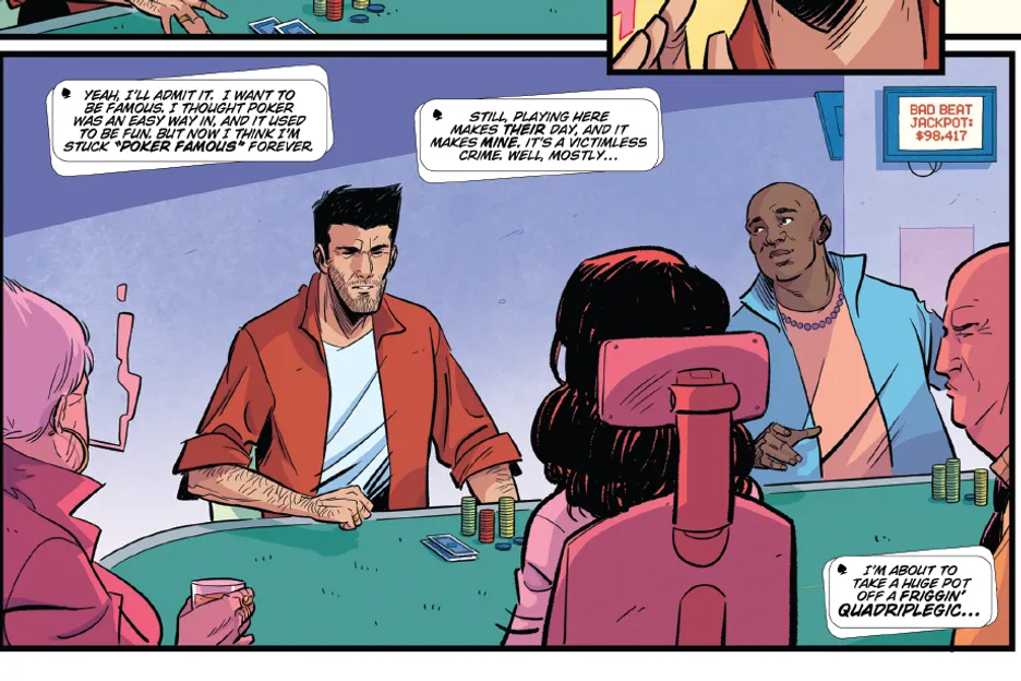 More than that, though, Trapped is a fun read. The artwork is colorful and packed with character, and the writing has genuine charm - even if a freewheeling narrative comes together perhaps too neatly at the end. The real novelty in this graphic novel comes from the fact this is a poker story that knows poker, how it works, why it works, and why there’s more than a little truth in the old adage, ‘the next best thing to playing poker and winning, is playing poker and losing’.