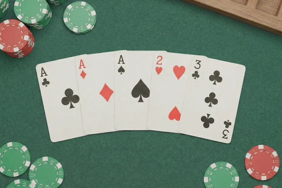 It’s impossible to tie a hand holding three-of-a-kind in 5-card draw, as there are no community cards. If more than one player has three-of-a-kind, the winner is the highest-ranked, with aces counting as high.