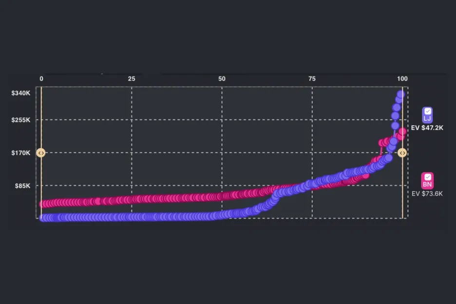 Joao’s optimal river strategy should be highly polarized — shoving with all of his strongest hands like flushes, full houses, quads, and straight flushes, as well as his bluffs with no showdown value. The middle of his range, on the other hand, should mostly check or opt for a smaller bet, around 50% of the pot. All straights should bet the river, typically leaning toward this mid-size bet.