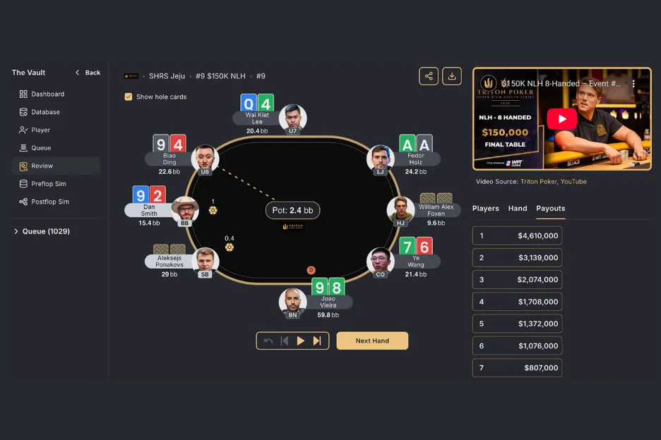 At first glance, Joao’s check on the river is a bit surprising — he still has a strong hand with a straight and an SPR (stack-to-pot ratio) of around 1, a spot where betting could’ve put Fedor in serious trouble, potentially even knocking him out.