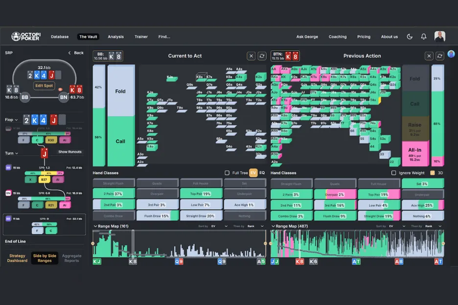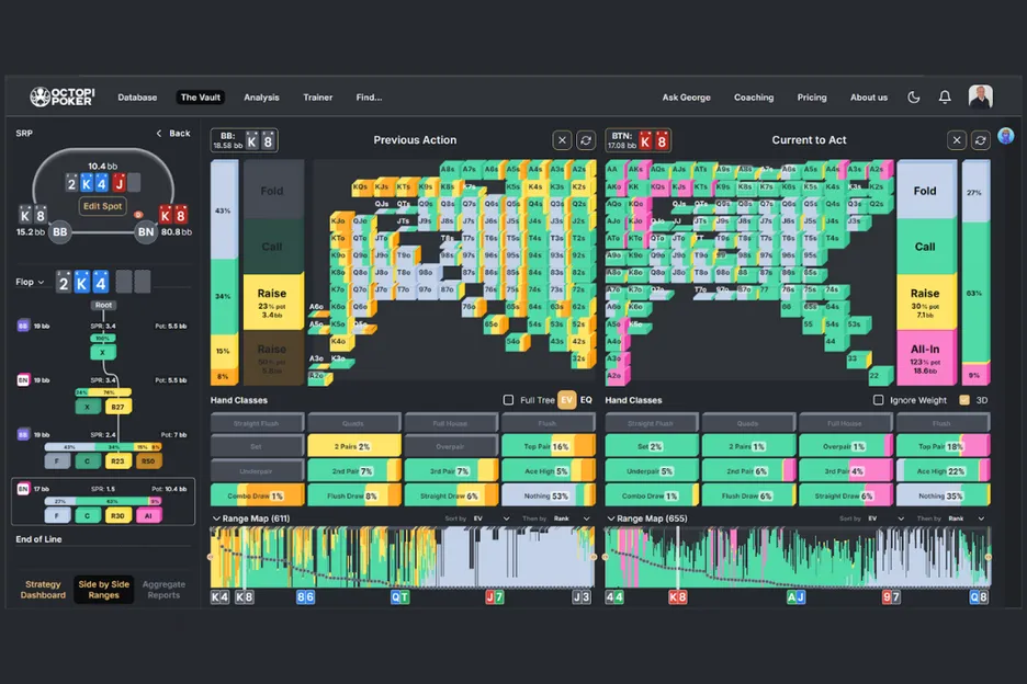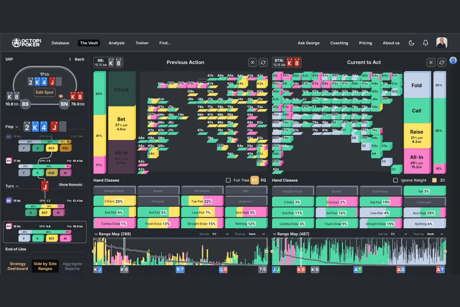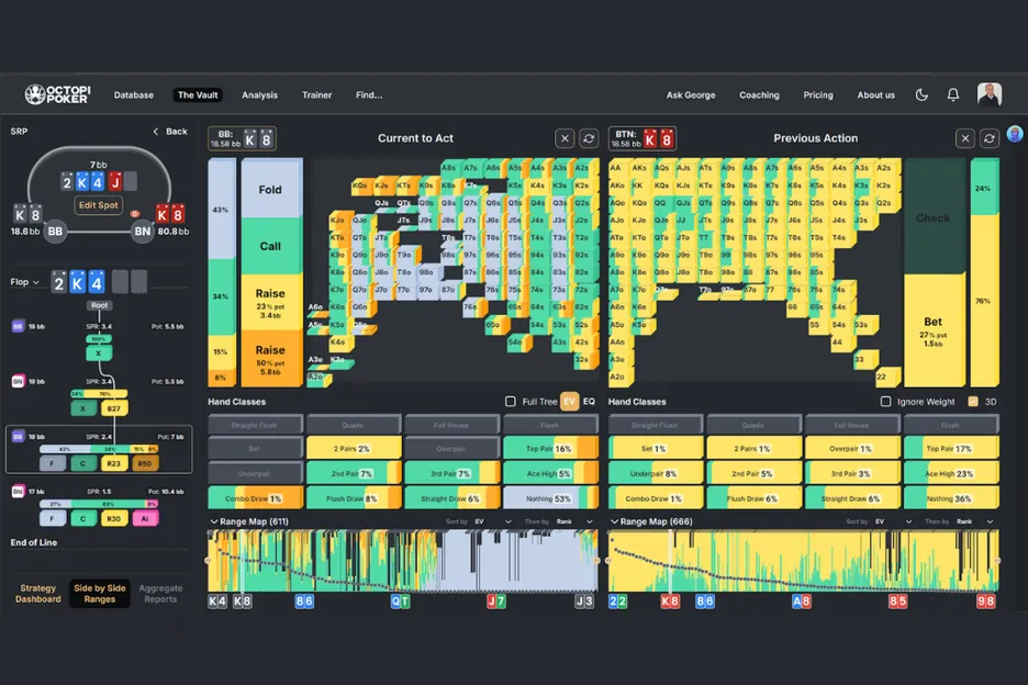 We can analyze their strategies using the custom sim from Octopi Vault to determine if they played correctly and to glean insights into their ranges for post-flop analysis.